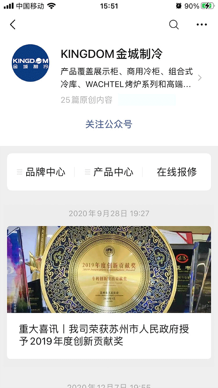 金城制冷唯一官方公眾號(hào)